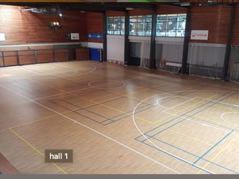 - Configurations : 1 terrain de basket central, ou 2 terrains de Volley-ball, ou 4 terrains de Badminton.